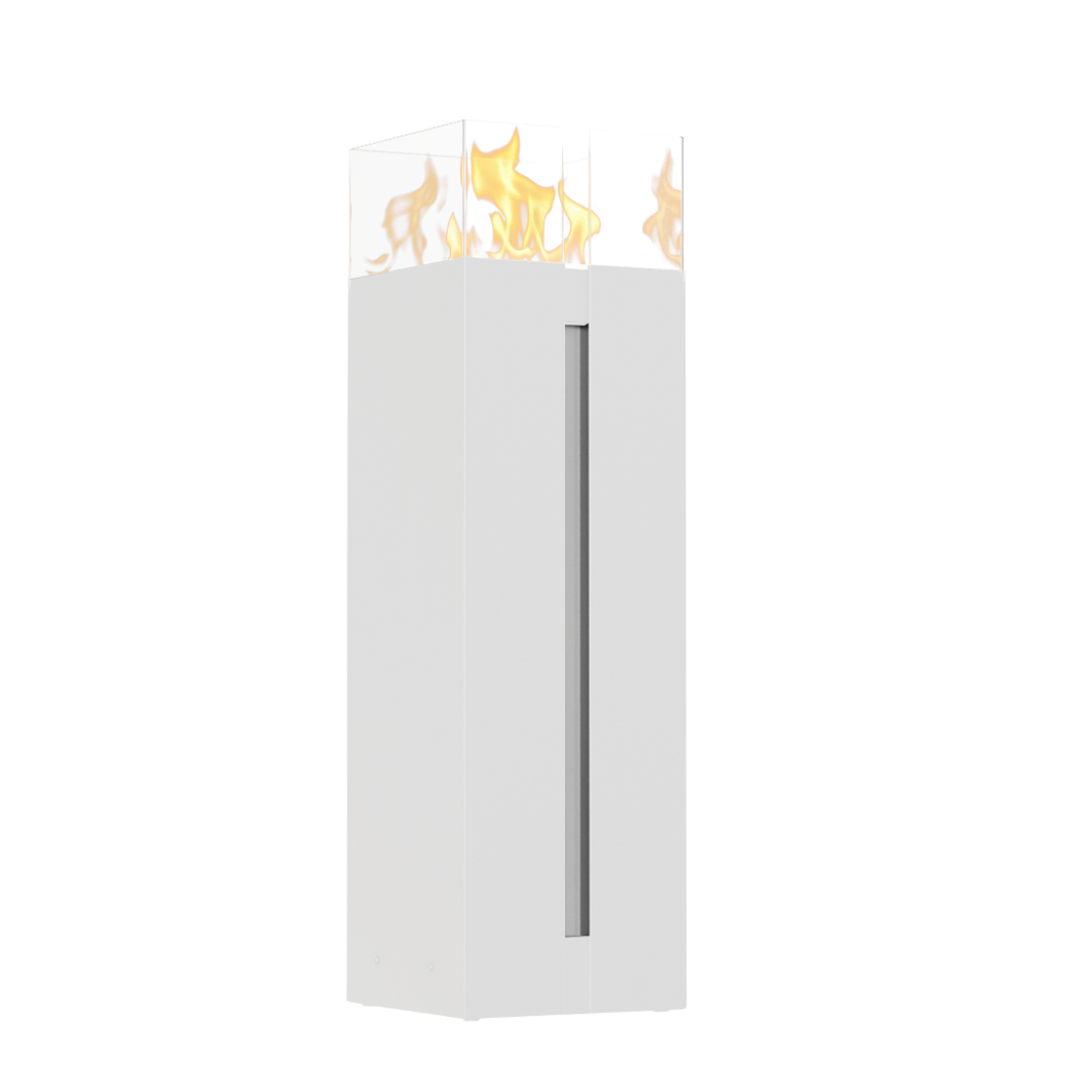 ROMEO SQUARE bio-eldstad är en modell där du kan beundra elden från alla fyra sidor, tack vare dess glasfinish. Denna fristående bio-eldstad passar både hemmet och trädgården, där samspelet mellan eld och skugga kommer att glädja alla. Romeo finns i två universella färger – svart och vitt, så alla kan välja rätt för sin inredning.