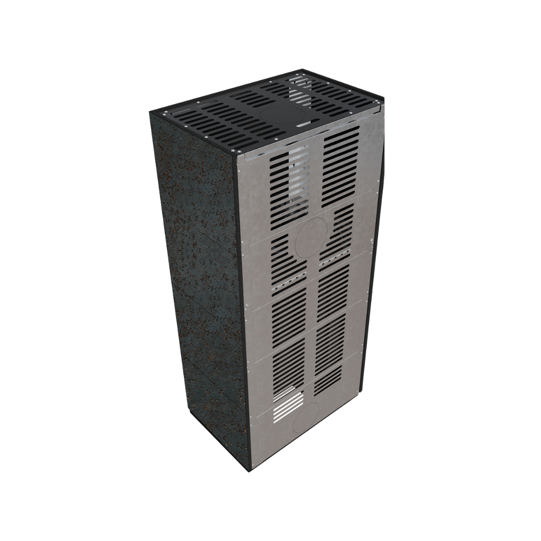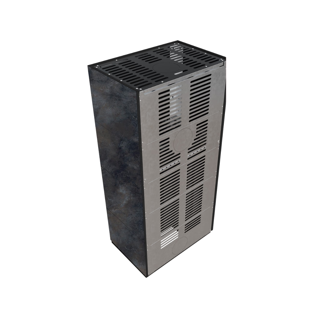 Vi har en färdig lösning för dig! FLOKI BOX eldstad är en kombination av modern, miljövänlig FLOKI S-insats och monteringsklar mantel av stål. Minimalismen på dess mantel kommer perfekt att matcha alla interiörer. Hela partiet är ett perfekt svar på de aktuella inredningstrenderna. Dess perfekta proportioner och minimalism i kombination med trevägsvyn av eld skapar ett mysigt klimat.