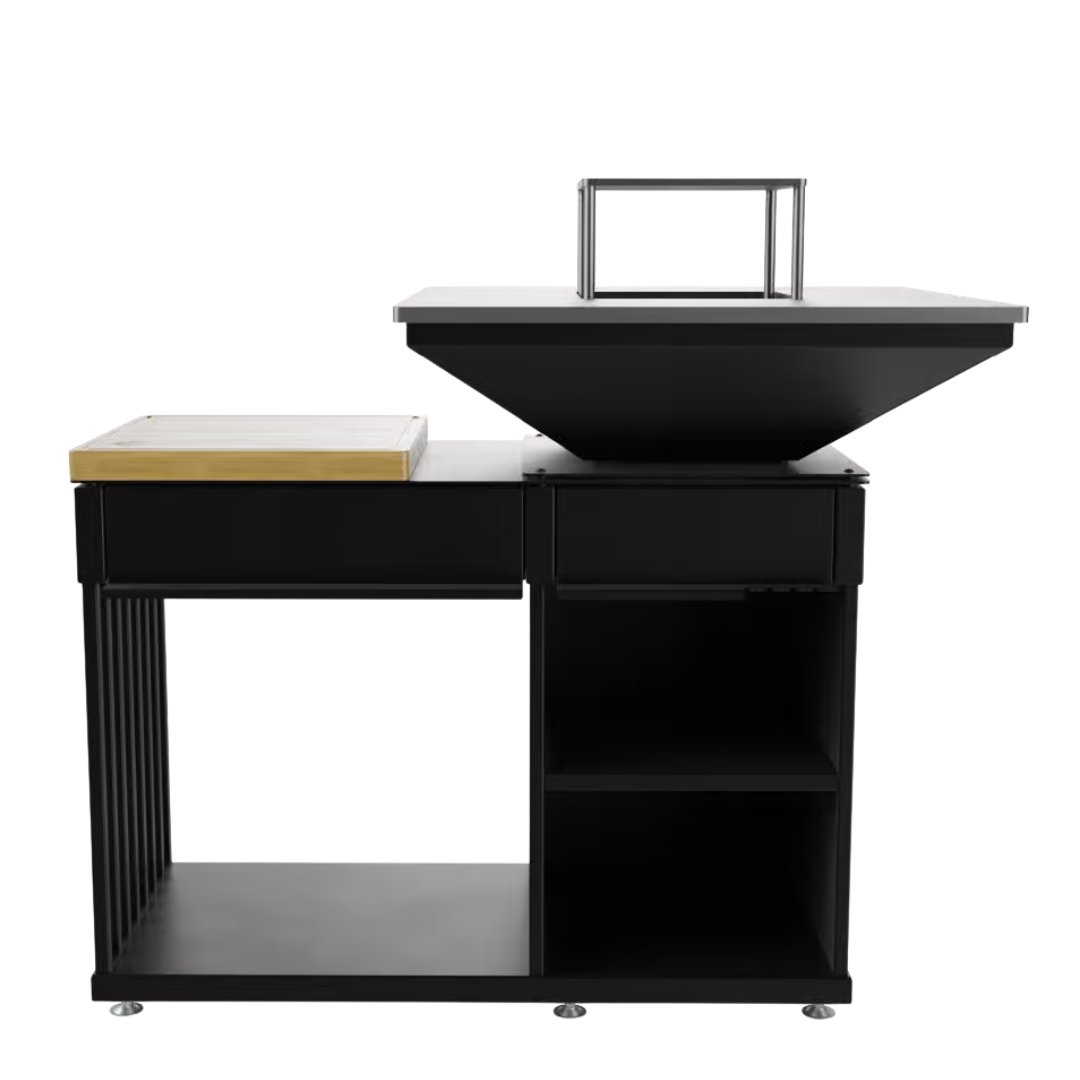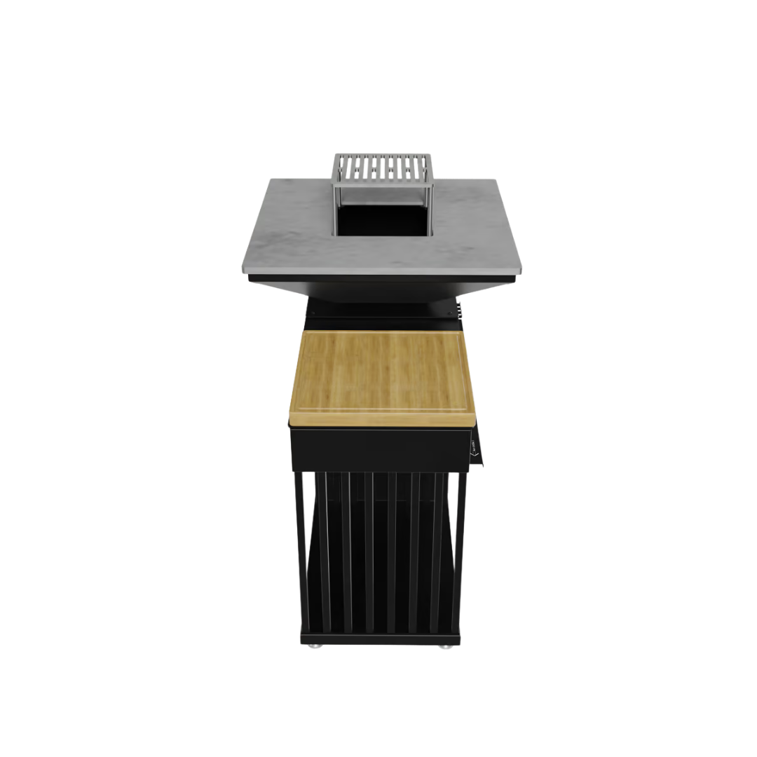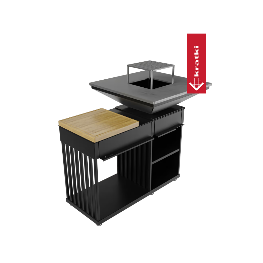 QUADRUM BBQ är en utmärkt högkvalitativ, professionell grilleldstad med vedeldad eldstad. Den kombinerar allt i ett. Utrustad med ett rostfritt galler, praktiska förvaringsfack för redskap och kryddor samt en praktisk / rymlig träkammare. QUADRUM eldstadsgrill är inte bara en modern trädgårdsgrill, utan också ett fullt utrustat utomhuskök.